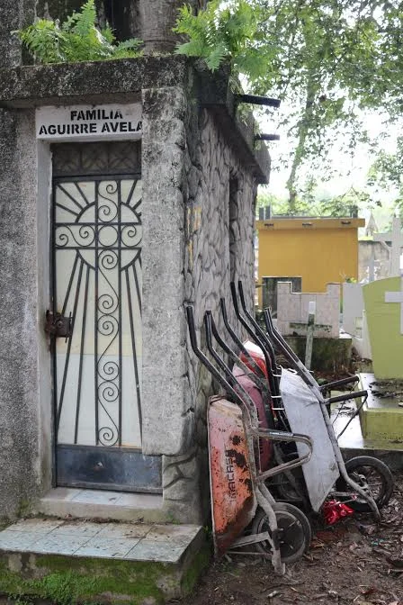We had gone to the Cementerio Municipal Santa Tecla about 30 minutes from the capital to look at the mausoleums. After wandering endless rows of delicate buildings and crumbling tombs, we had started to head back to our car when we saw the funeral procession approaching.
